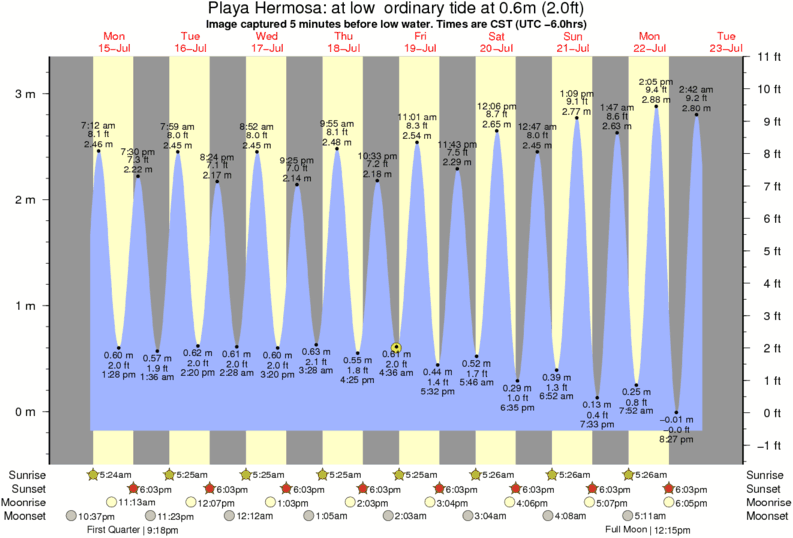 Forecast wind and swell just offshore from Playa Hermosa around the time the photo was taken