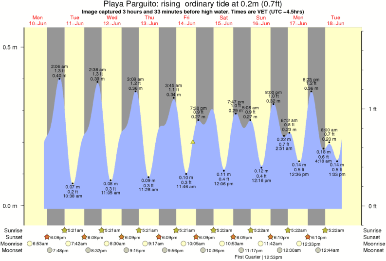 Forecast wind and swell just offshore from Playa Parguito around the time the photo was taken