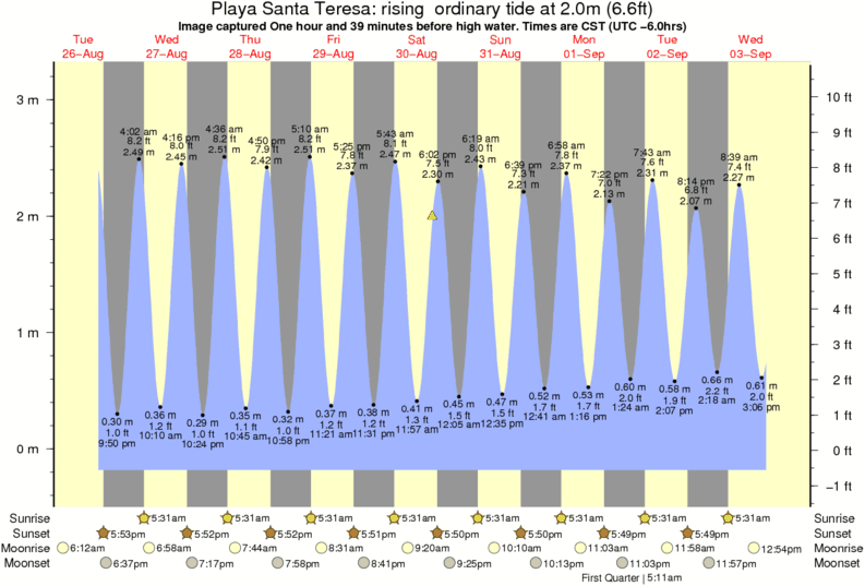 Forecast wind and swell just offshore from Playa Santa Teresa around the time the photo was taken