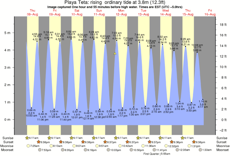Forecast wind and swell just offshore from Playa Teta around the time the photo was taken