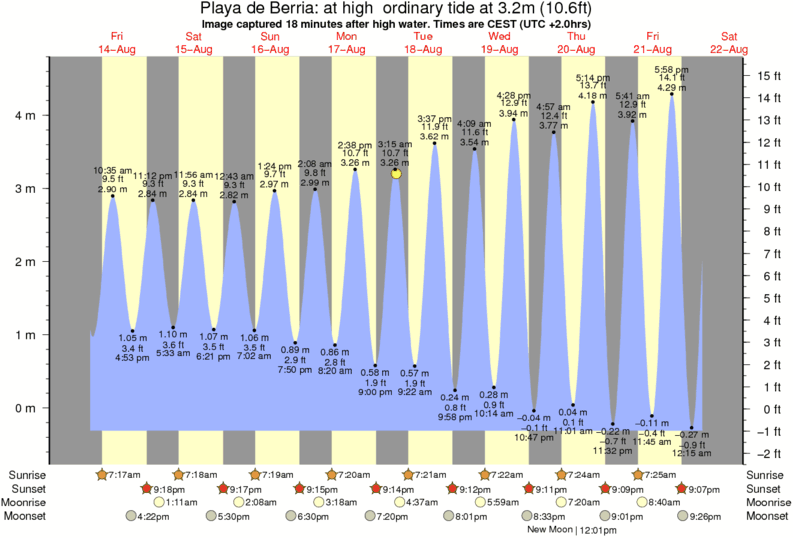 Image captured 18 minutes after high water (at high ordinary tide). Tide height was 3.2m (10.6 ft). Range 4.65m (15.3 ft). Toggle tide graph