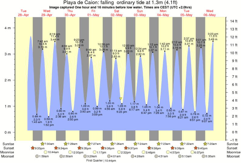 Image captured One hour and 16 minutes before low water (falling ordinary tide). Tide height was 1.3m (4.1 ft). Range 3.95m (13.0 ft). Toggle tide graph