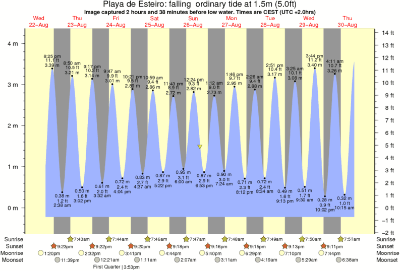 Image captured 2 hours and 38 minutes before low water (falling ordinary tide). Tide height was 1.5m (5.0 ft). Range 4.17m (13.7 ft). Toggle tide graph