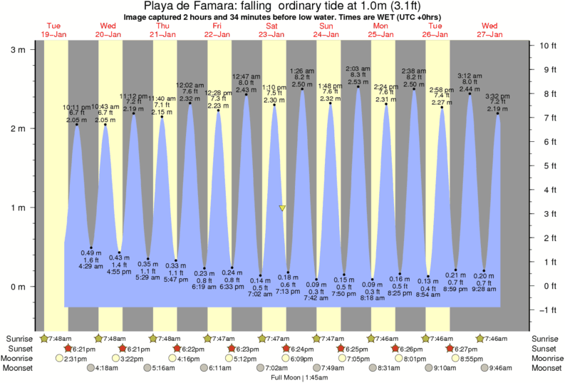 Image captured 2 hours and 34 minutes before low water (falling ordinary tide). Tide height was 1.0m (3.1 ft). Range 3.07m (10.1 ft). Toggle tide graph