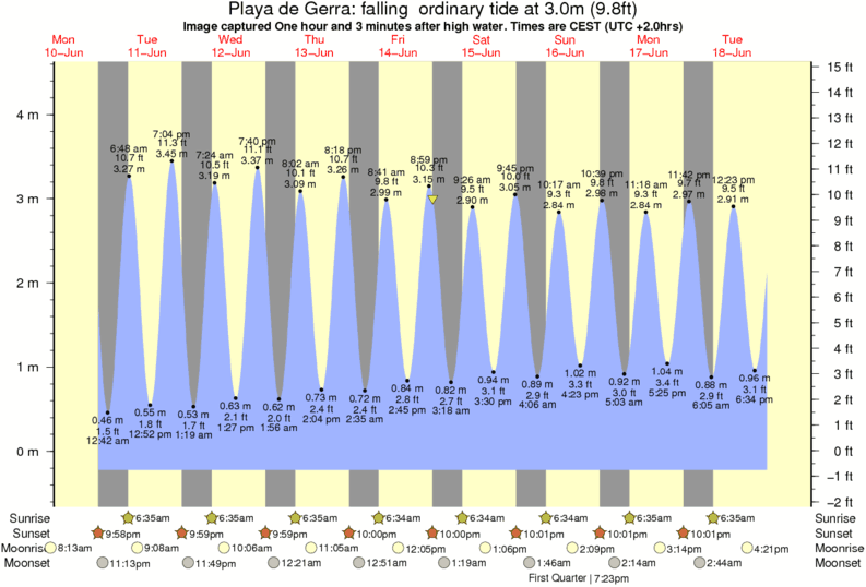 Image captured One hour and 3 minutes after high water (falling ordinary tide). Tide height was 3.0m (9.8 ft). Range 4.41m (14.5 ft). Toggle tide graph