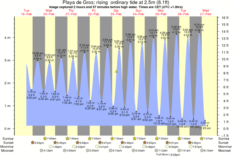 Image captured 2 hours and 57 minutes before high water (rising ordinary tide). Tide height was 2.5m (8.1 ft). Range 4.36m (14.3 ft). Toggle tide graph