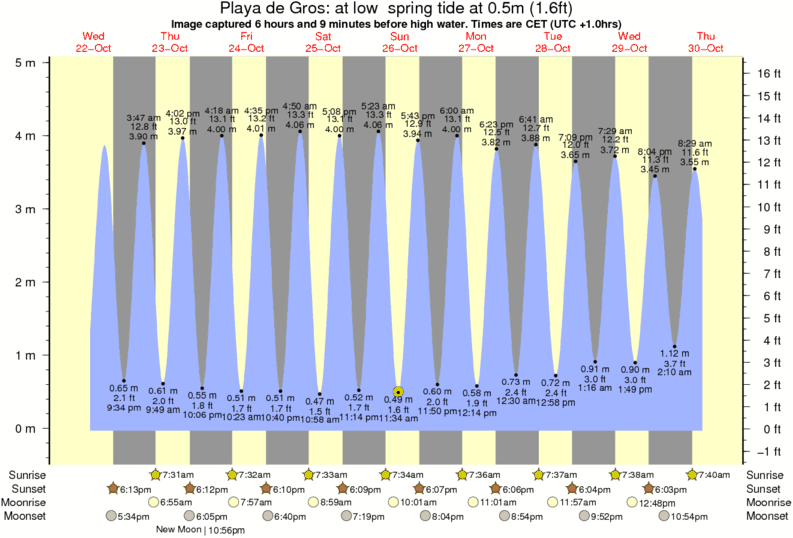 Image captured 6 hours and 9 minutes before high water (at low spring tide). Tide height was 0.5m (1.6 ft). Range 4.65m (15.3 ft). Toggle tide graph