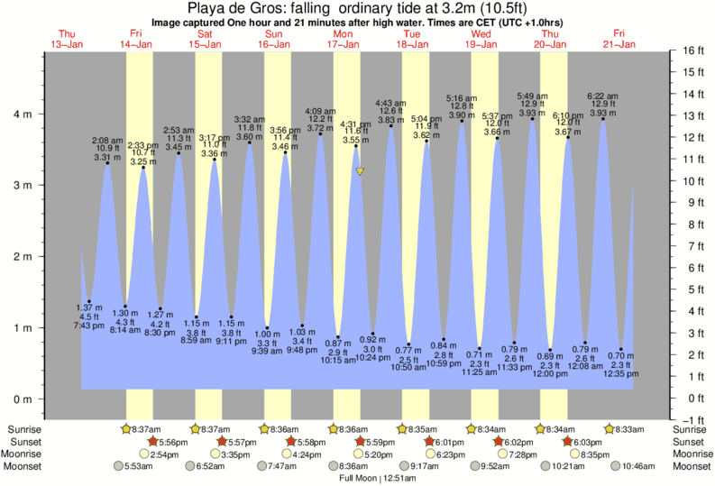 Image captured One hour and 21 minutes after high water (falling ordinary tide). Tide height was 3.2m (10.5 ft). Range 4.30m (14.1 ft). Toggle tide graph