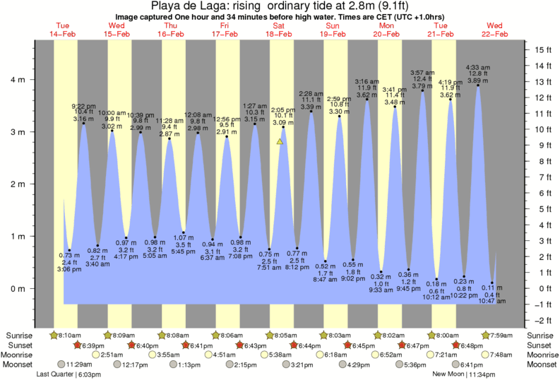 Forecast wind and swell just offshore from Playa de Laga around the time the photo was taken