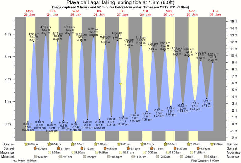 Forecast wind and swell just offshore from Playa de Laga around the time the photo was taken