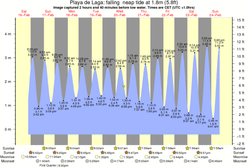 Image captured 2 hours and 40 minutes before low water (falling neap tide). Tide height was 1.8m (5.8 ft). Range 4.46m (14.6 ft). Toggle tide graph