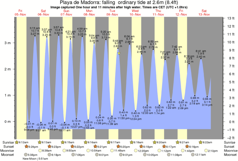 Image captured One hour and 11 minutes after high water (falling ordinary tide). Tide height was 2.6m (8.4 ft). Range 3.89m (12.8 ft). Toggle tide graph