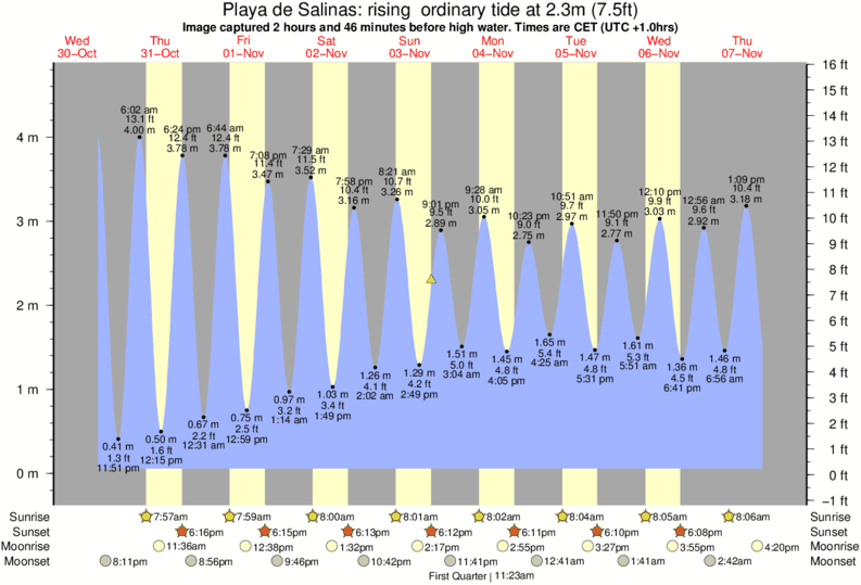 Forecast wind and swell just offshore from Playa de Salinas around the time the photo was taken