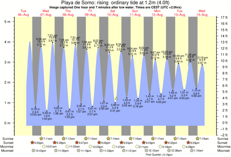Image captured One hour and 7 minutes after low water (rising ordinary tide). Tide height was 1.2m (4.0 ft). Range 4.89m (16.0 ft). Toggle tide graph