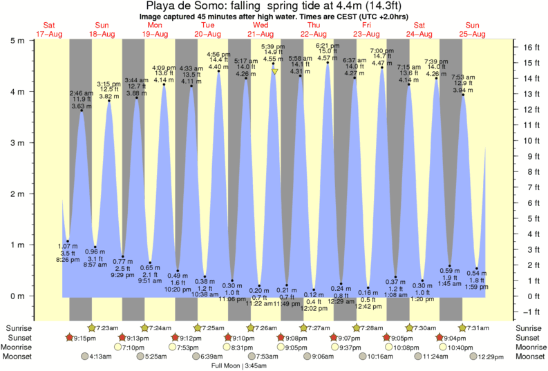 Image captured 45 minutes after high water (falling spring tide). Tide height was 4.4m (14.3 ft). Range 4.60m (15.1 ft). Toggle tide graph