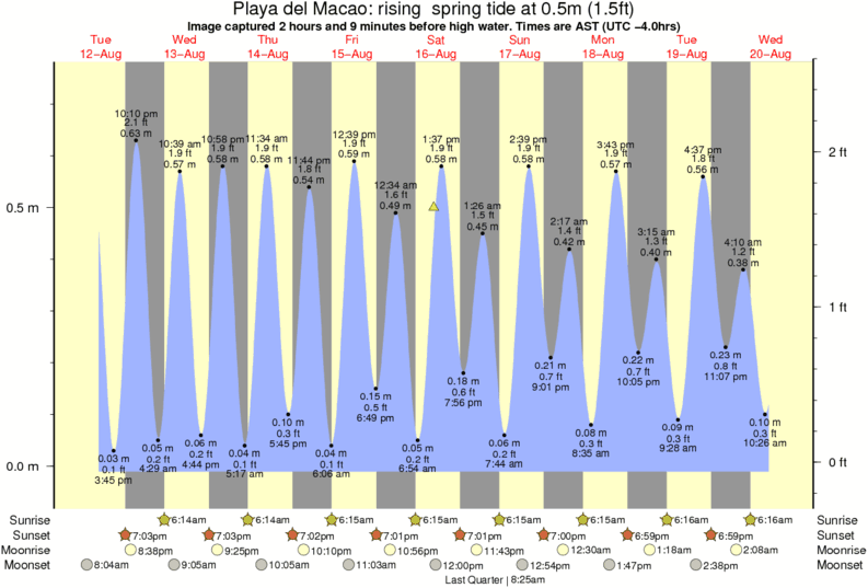 Forecast wind and swell just offshore from Playa del Macao around the time the photo was taken