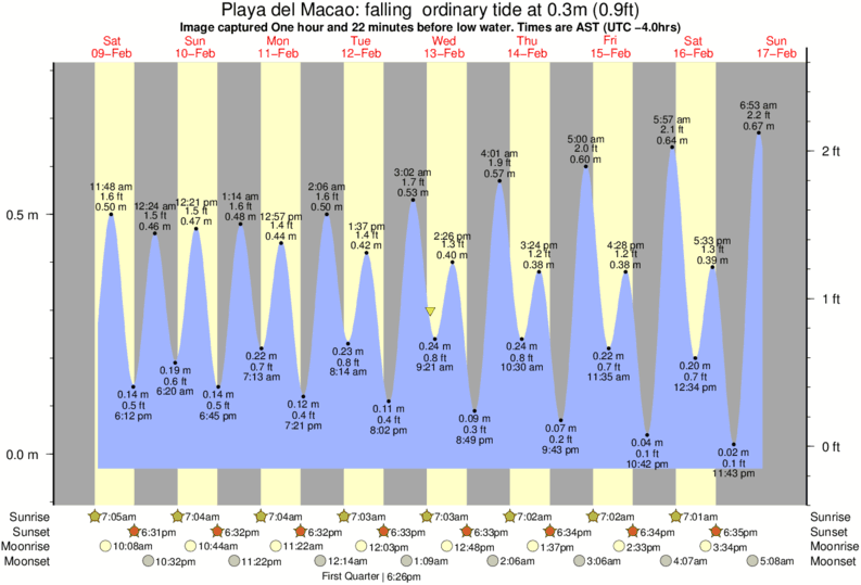 Forecast wind and swell just offshore from Playa del Macao around the time the photo was taken
