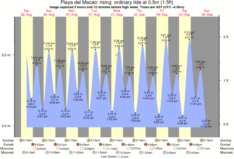 Forecast wind and swell just offshore from Playa del Macao around the time the photo was taken