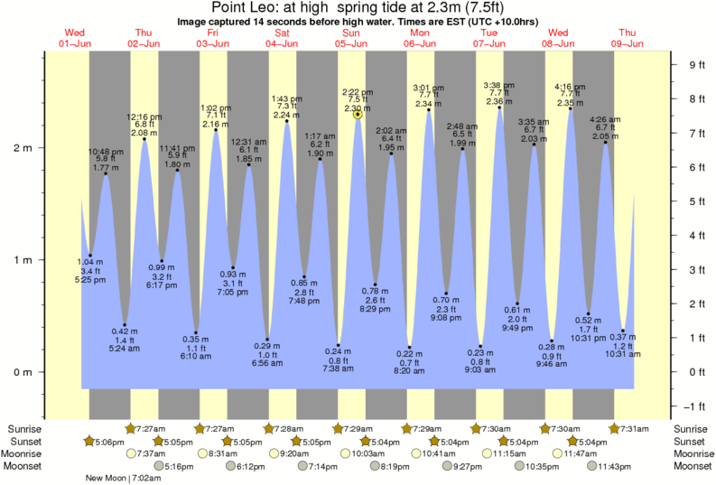 Image captured 14 seconds before high water (at high spring tide). Tide height was 2.3m (7.5 ft). Range 2.74m (9.0 ft). Toggle tide graph