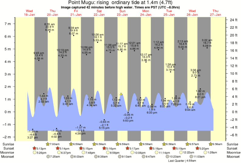 Forecast wind and swell just offshore from Point Mugu around the time the photo was taken