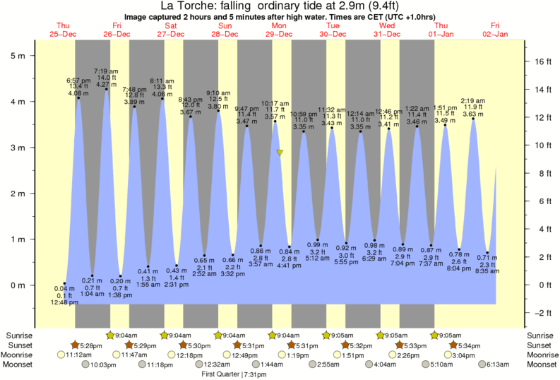 Image captured 2 hours and 5 minutes after high water (falling ordinary tide). Tide height was 2.9m (9.4 ft). Range 5.23m (17.2 ft). Toggle tide graph