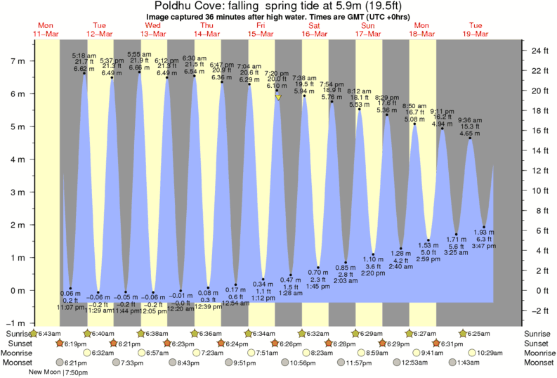 Image captured 36 minutes after high water (falling spring tide). Tide height was 5.9m (19.5 ft). Range 7.29m (23.9 ft). Toggle tide graph