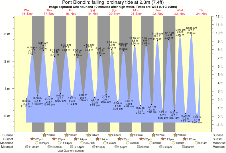 Image captured One hour and 12 minutes after high water (falling ordinary tide). Tide height was 2.3m (7.4 ft). Range 3.54m (11.6 ft). Toggle tide graph