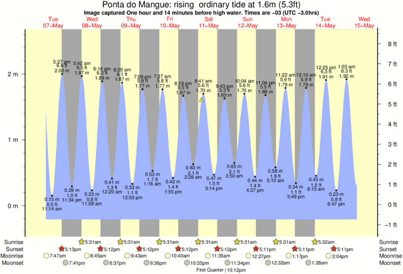 Image captured One hour and 14 minutes before high water (rising ordinary tide). Tide height was 1.6m (5.3 ft). Range 2.63m (8.6 ft). Toggle tide graph