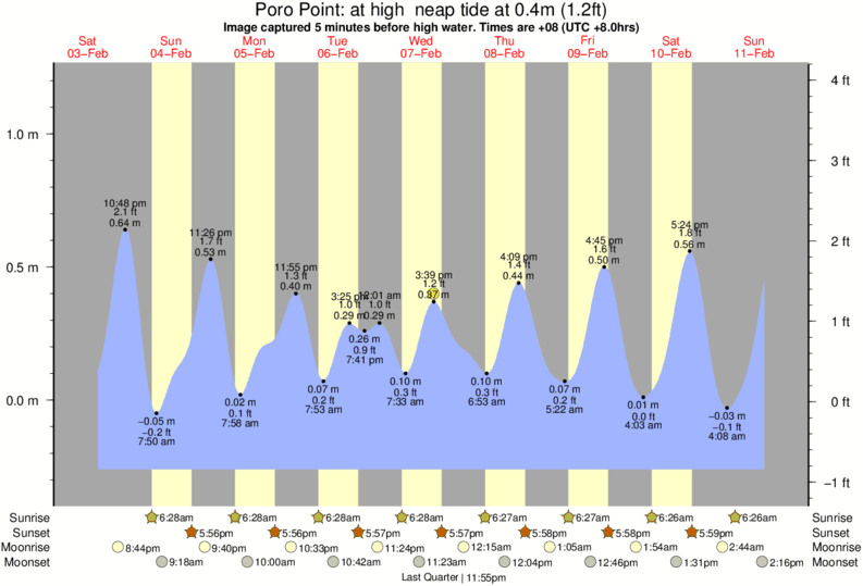 Forecast wind and swell just offshore from Poro Point around the time the photo was taken