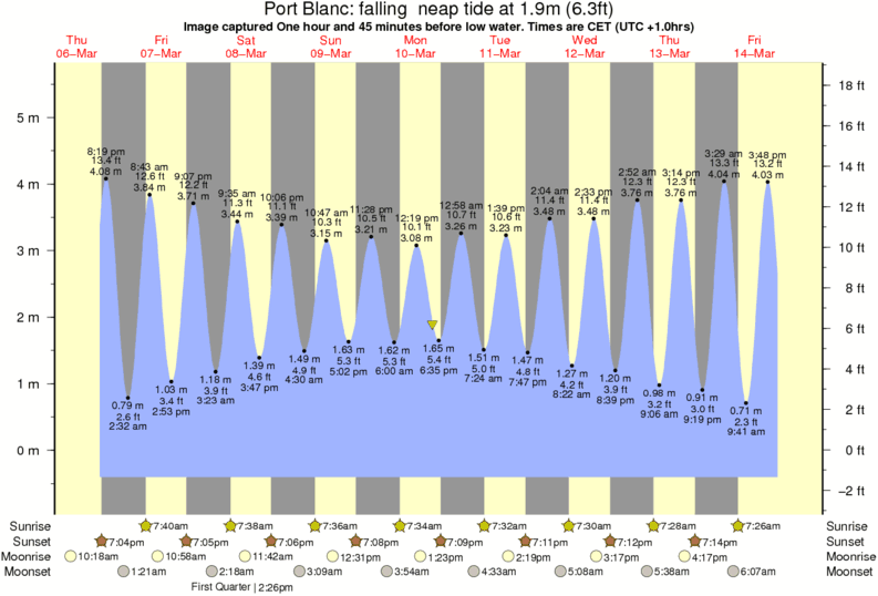 Image captured One hour and 45 minutes before low water (falling neap tide). Tide height was 1.9m (6.3 ft). Range 5.66m (18.6 ft). Toggle tide graph