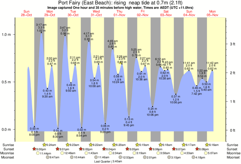 Forecast wind and swell just offshore from Port Fairy (East Beach) around the time the photo was taken