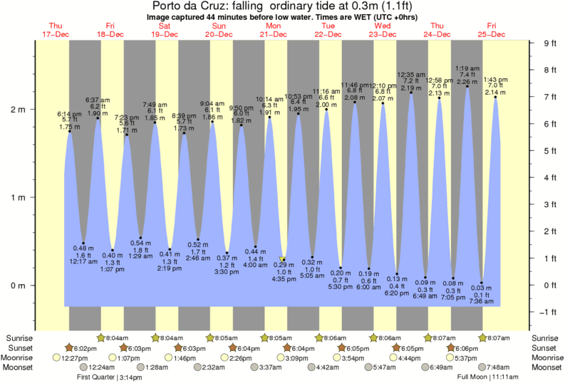 Forecast wind and swell just offshore from Porto da Cruz around the time the photo was taken