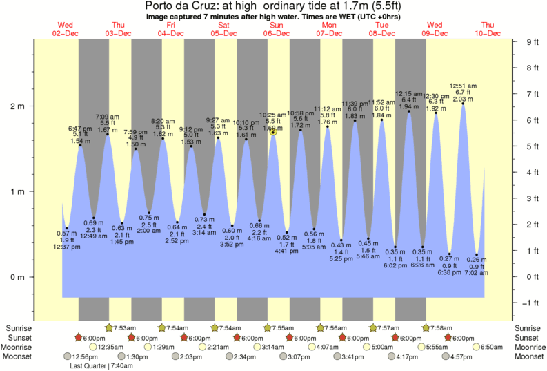 Forecast wind and swell just offshore from Porto da Cruz around the time the photo was taken