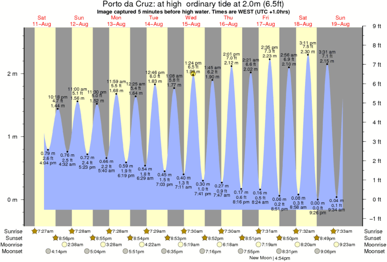Forecast wind and swell just offshore from Porto da Cruz around the time the photo was taken