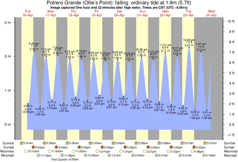 Image captured One hour and 22 minutes after high water (falling ordinary tide). Tide height was 1.8m (5.7 ft). Range 3.01m (9.9 ft). Toggle tide graph