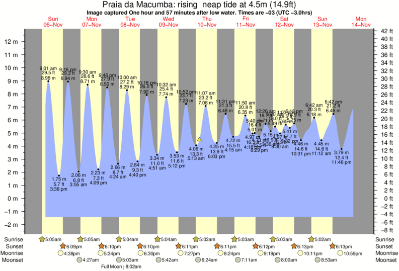 Forecast wind and swell just offshore from Praia da Macumba around the time the photo was taken