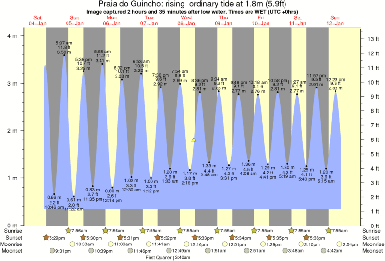 Image captured 2 hours and 35 minutes after low water (rising ordinary tide). Tide height was 1.8m (5.9 ft). Range 3.49m (11.5 ft). Toggle tide graph