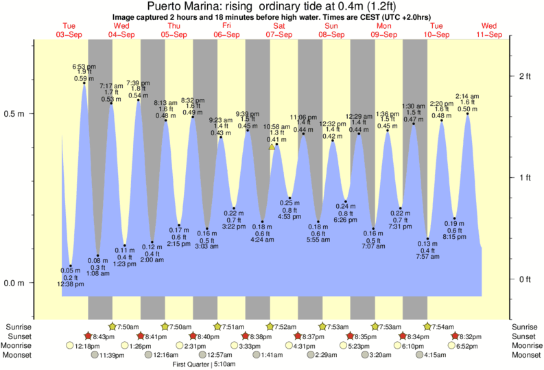 Image captured 2 hours and 18 minutes before high water (rising ordinary tide). Tide height was 0.4m (1.2 ft). Range 0.69m (2.3 ft). Toggle tide graph