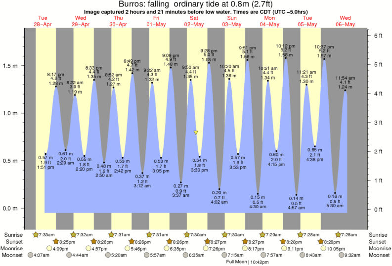Image captured 2 hours and 21 minutes before low water (falling ordinary tide). Tide height was 0.8m (2.7 ft). Range 1.77m (5.8 ft). Toggle tide graph