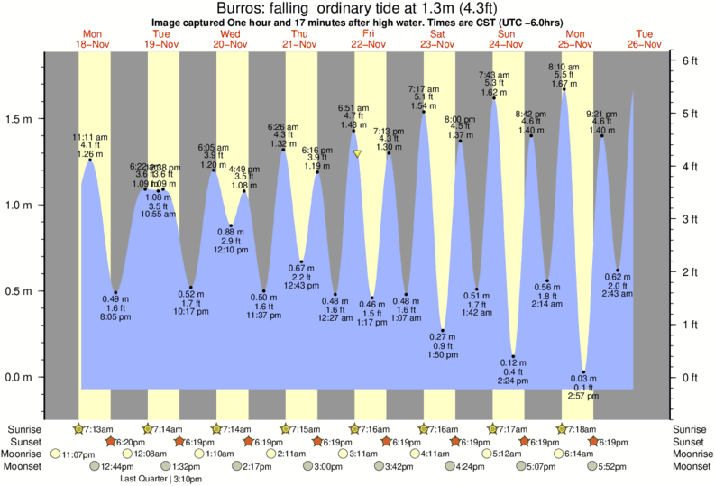 Image captured One hour and 17 minutes after high water (falling ordinary tide). Tide height was 1.3m (4.3 ft). Range 1.78m (5.8 ft). Toggle tide graph