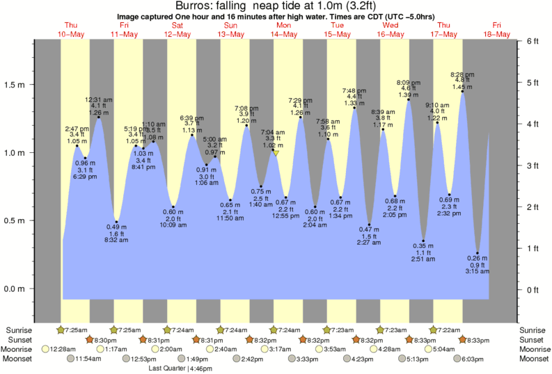 Image captured One hour and 16 minutes after high water (falling neap tide). Tide height was 1.0m (3.2 ft). Range 1.74m (5.7 ft). Toggle tide graph