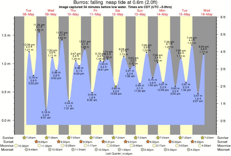 Image captured 34 minutes before low water (falling neap tide). Tide height was 0.6m (2.0 ft). Range 1.74m (5.7 ft). Toggle tide graph
