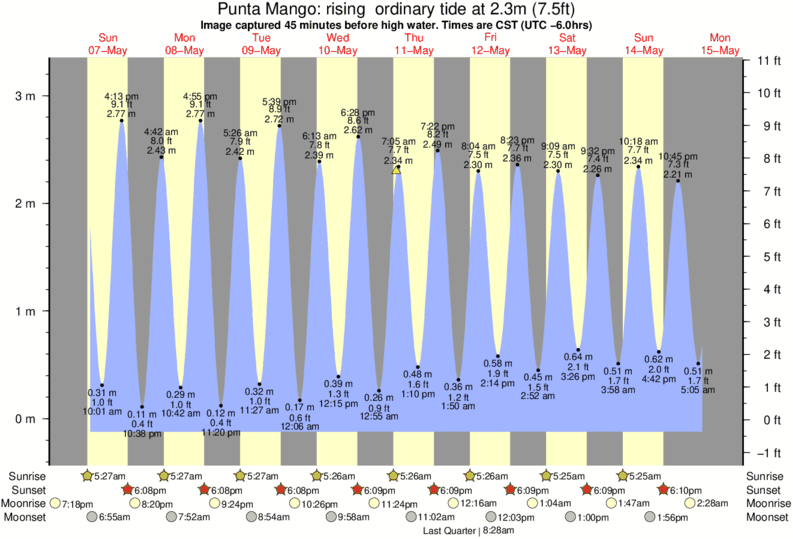 Forecast wind and swell just offshore from Punta Mango around the time the photo was taken