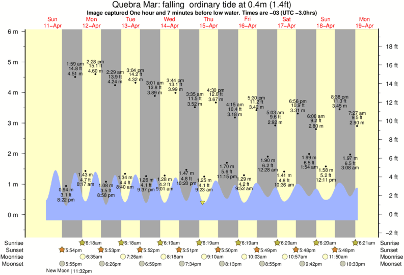 Image captured One hour and 7 minutes before low water (falling ordinary tide). Tide height was 0.4m (1.4 ft). Range 5.68m (18.6 ft). Toggle tide graph