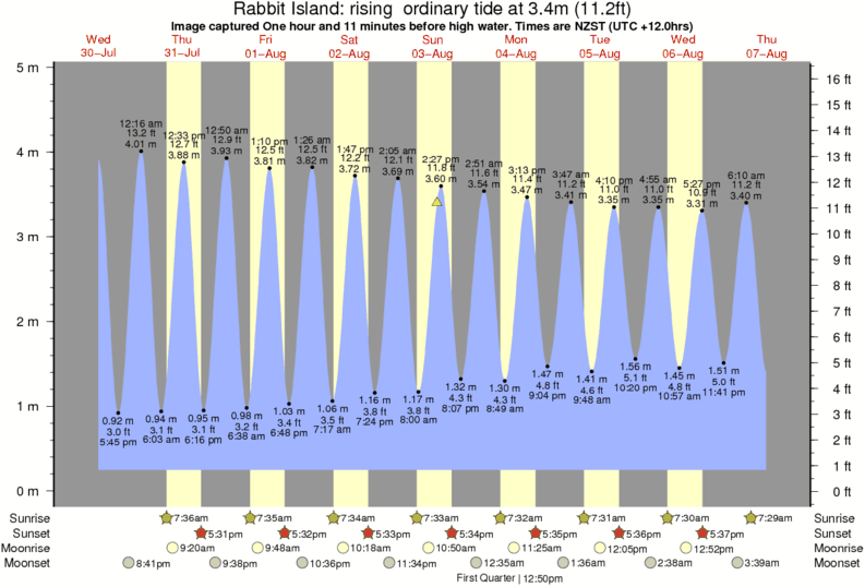 Forecast wind and swell just offshore from Rabbit Island around the time the photo was taken