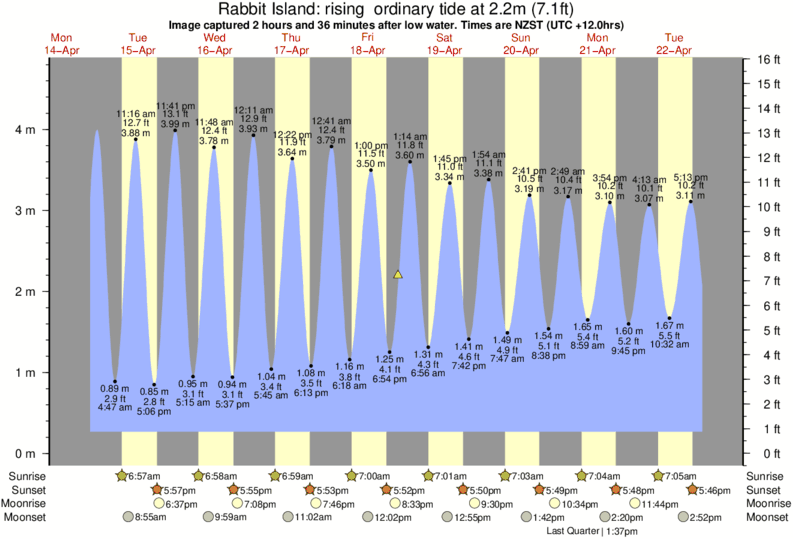 Image captured 2 hours and 36 minutes after low water (rising ordinary tide). Tide height was 2.2m (7.1 ft). Range 4.20m (13.8 ft). Toggle tide graph
