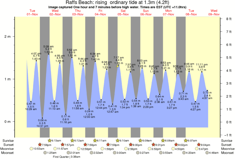 Forecast wind and swell just offshore from Raffs Beach around the time the photo was taken