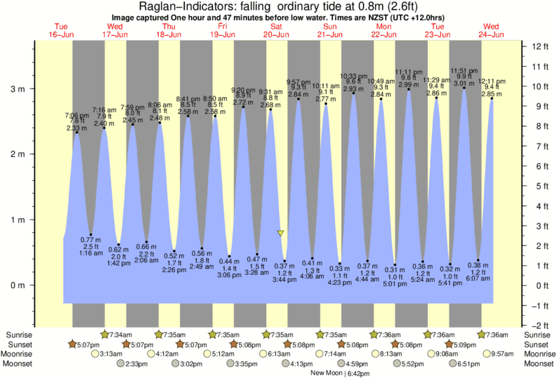 Forecast wind and swell just offshore from Raglan-Indicators around the time the photo was taken