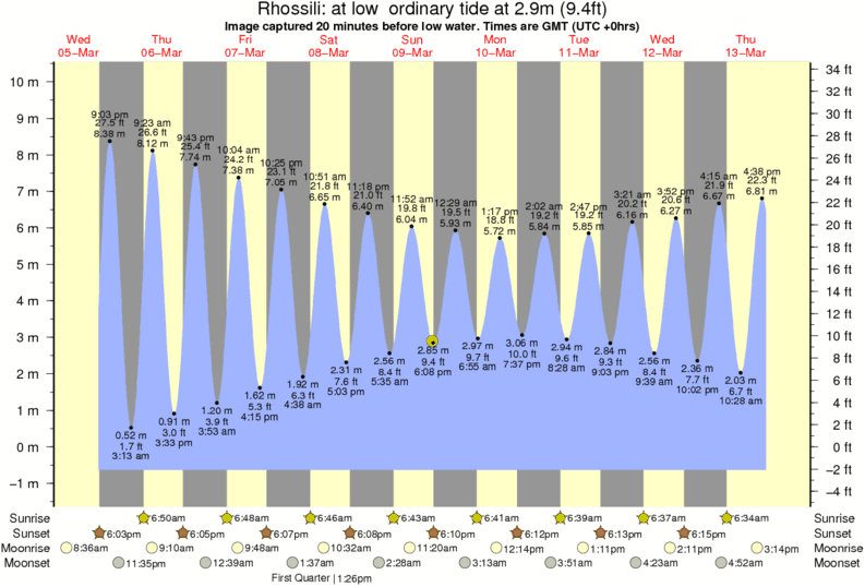 Image captured 20 minutes before low water (at low ordinary tide). Tide height was 2.9m (9.4 ft). Range 10.17m (33.4 ft). Toggle tide graph