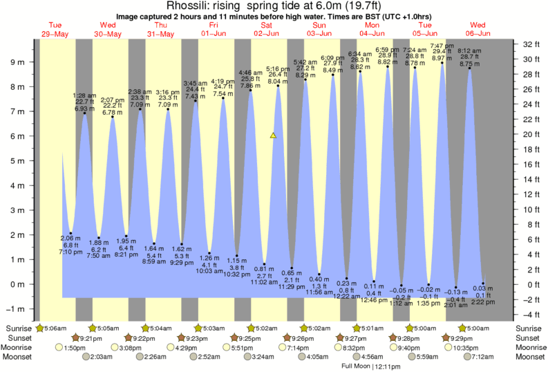 Image captured 2 hours and 11 minutes before high water (rising spring tide). Tide height was 6.0m (19.7 ft). Range 9.53m (31.3 ft). Toggle tide graph